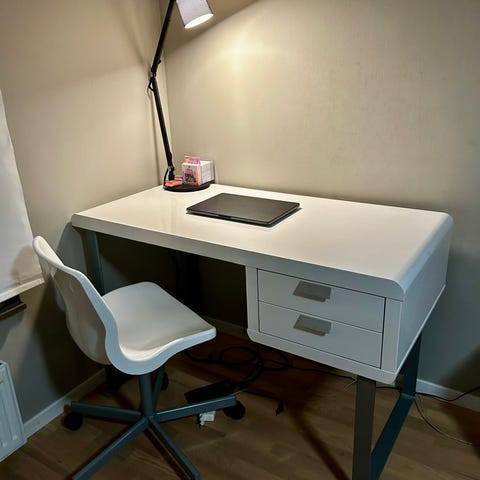 Vitt skrivbord för barn från Ikea. Skavanker finns. Se bild . Hämtas senast söndag 15/2 kväll. Pris kan diskuteras vid snabb avhämtning.