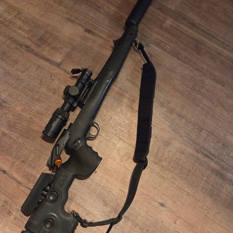 Ljuddämpare och fästet kan följas med till rätt pris.