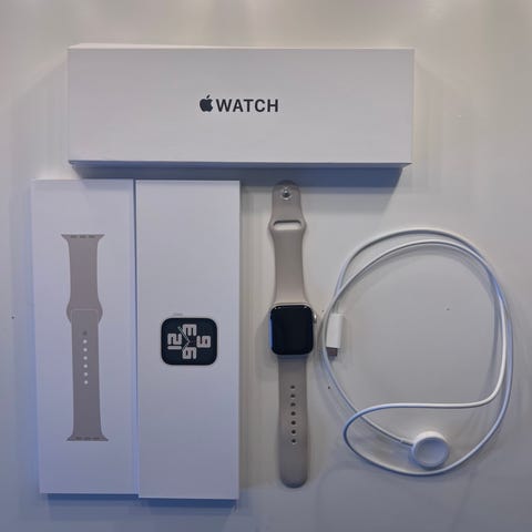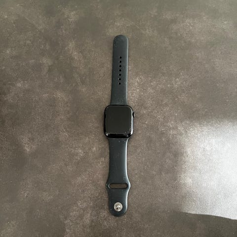 Utbytesenhet jag fick nu i september 2025 efter att batteriet på min gamla börjat ta slut. Kommer med begagnat och välanvänt armband ”milanesisk loop” i rostfritt samt originalladdare (utan nätadapter).