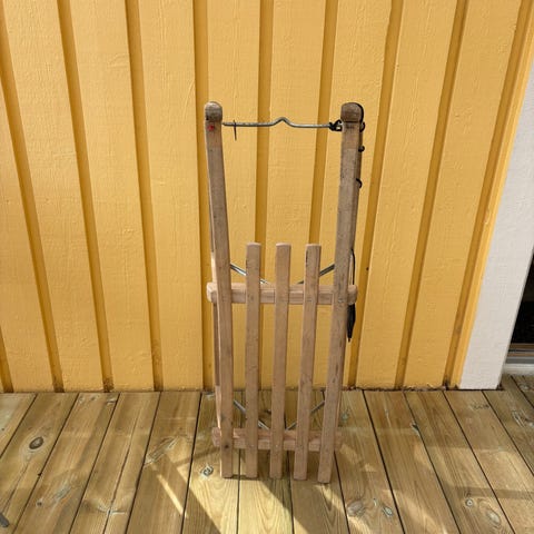 Trä snö kälke. Längd: 110cm, sitthöjd:23cm.