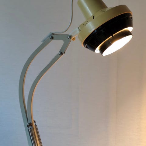 Bordslampa med nysydd ljusblå lampskärm