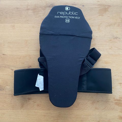 Everest ryggskydd för junior i storlek 148–164 cm. Ryggskyddet har justerbara axelremmar och midjebälte för att sitta stadigt på plats. Skyddet är i mycket fin skick. Pris 500kr (nypris i butik 999kr).