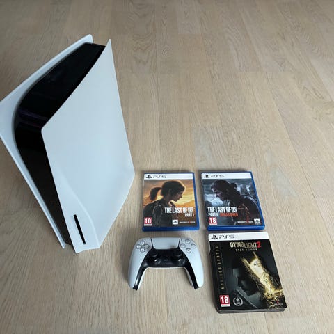 Jag säljer allt för sammanlagt 5000kr. Spelen heter Spiderman 2 och FC25. Gta 5 finns inne i playstation 5 slim disc edition. All sladdar och handkontroll ingår. Kan hämtas eller fraktas.