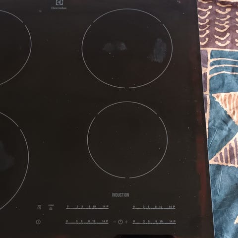 Electrolux induktionshäll med fyra kokzoner. 60 cm. Hällen har touchpanel framtill med separata reglage för varje zon. Fullt fungerande.