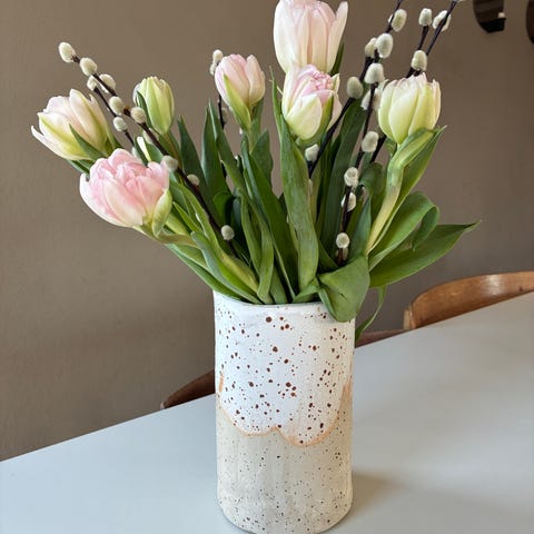 Två handgjorda muggar i stengodslera som tål diskmaskin. Finns i flera färger. Men annonsen avser gula. För mer av min keramik se Instagram Emlaskeramik.