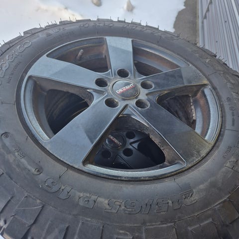 Två däck har obalans, kan vara däcken som är skadad. En fälg har skador längs kanten.