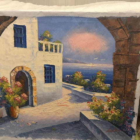 Målning olja på duk med man och två hästar i träram -högstbjudande