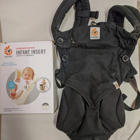 Ergobaby med bebisinsats. Mycket omtyckt! Välanvänd i gott skick.
