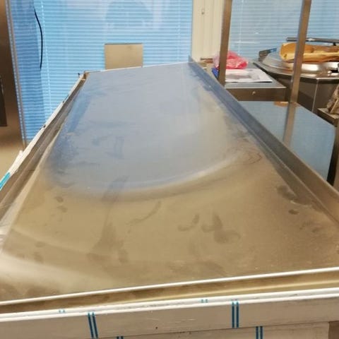 Rostfri tvätt- och sköljränna med två blandare. Utrustad med två separata kranar och en lång ränna i rostfritt stål, lämplig för exempelvis storkök, verkstad eller andra miljöer där flera personer behöver tillgång till vatten samtidigt. Konstruktionen i rostfritt material underlättar rengöring och ger god motståndskraft mot fukt och slitage.
