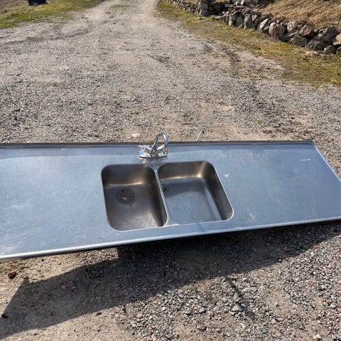 Rostfri tvätt- och sköljränna med två blandare
