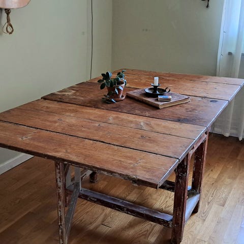 Äldre antikt ådringsmålat klaffbord. Inköpt på Hemlyckan Alingsås vintern 2024.