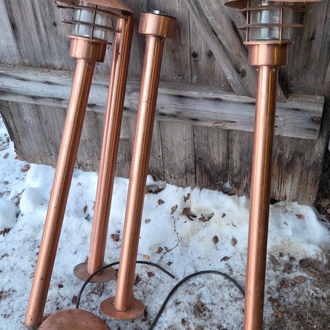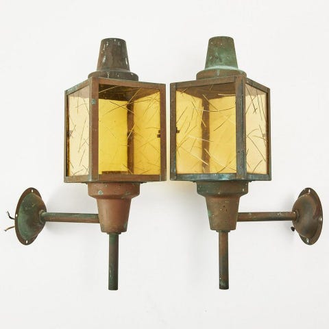 Äldre Utelampa - Lykta - Vägglampa i Koppar - Glas - Utebelysning