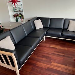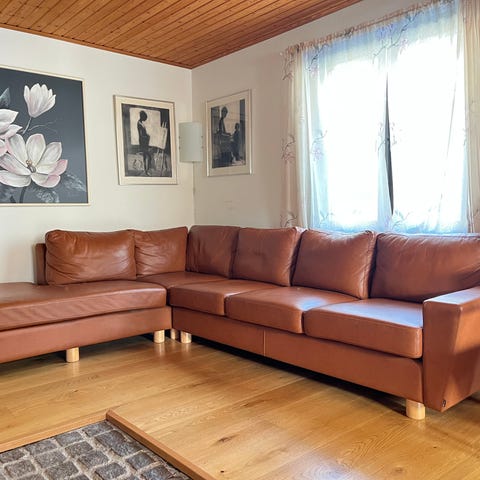 Ge ditt vardagsrum en lyxig känsla med denna stilrena hörnsoffa i äkta/brunt läder. Den är designad med dekorativa knappar som ger soffan en klassisk, tidlös charm. För extra komfort har soffan ett praktiskt fotstöd som kan fällas upp när du vill koppla av. Perfekt för både sociala sammankomster och lata kvällar hemma.
