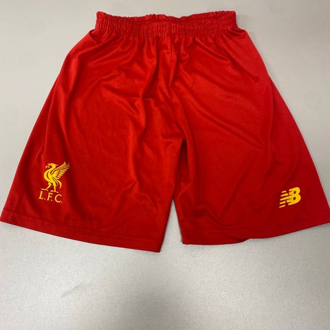 Adidas Bayern München fotbollsshorts i röd färg. Barnstorlek 170 (ca 15–16 år). Shorts med resår i midjan och klassiska vita ränder längs sidorna. Klubbmärke och Adidas-logga framtill. Passar för fotbollsträning och annan idrottsaktivitet.