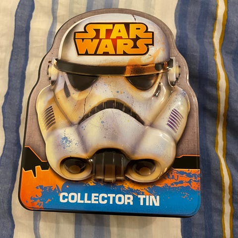 Aldrig använd av mig, dock har det varit popcorn i den men urdiskad försiktigt, har sedan varit nedpackad i en stor kartong med stötdämpande material med övriga bio bägare och muggar jag har uppe till försäljning. Dock är det en liten nästan osynlig om man vinklar bägaren under en ficklampa- syns ej med blotta ögat - mycket tunn reva på ca 1cm se ena bilden orsakad av leverantören till filmstaden då de packeteras i varandra med silkespapper enbart samt några enstaka hairlines i botten pga popcorn. I övrigt närmare nyskick.