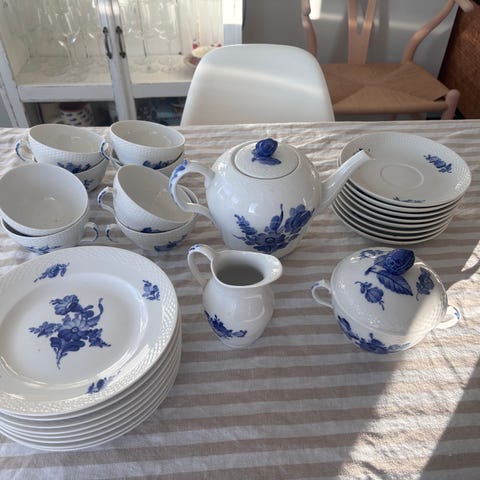 Kaffeservis från Royal Copenhagen i serien Blå Vifte ( Blue Fan) Desig av Arnold Krog.