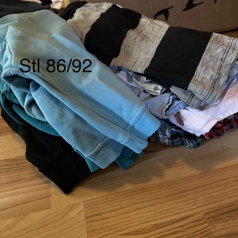 4 byxor, 4 tröjor i storlek 110/116, 1 par i storlek 104.