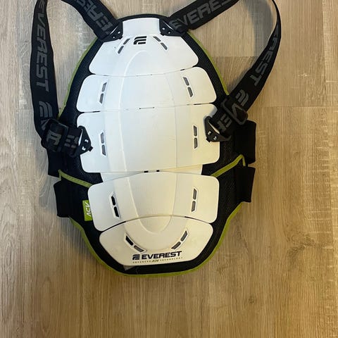 Everest J Back Protection ryggskydd för barn i storlek XS. Ryggskyddet har hårda skyddsplattor i svart och vitt på utsidan och vadderad baksida med gult och svart meshmaterial. Justerbara axelremmar och midjerem gör att skyddet kan anpassas efter kroppen. Avsett som ryggskydd vid exempelvis skidåkning eller andra aktiviteter där extra ryggskydd önskas.