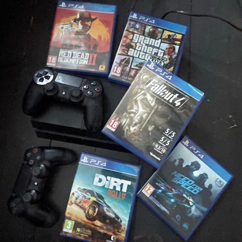 Sony Playstation 4 spelkonsol med handkontroller och spel