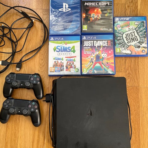 Ps4 slim med 2 handkontroller och 4 spel.