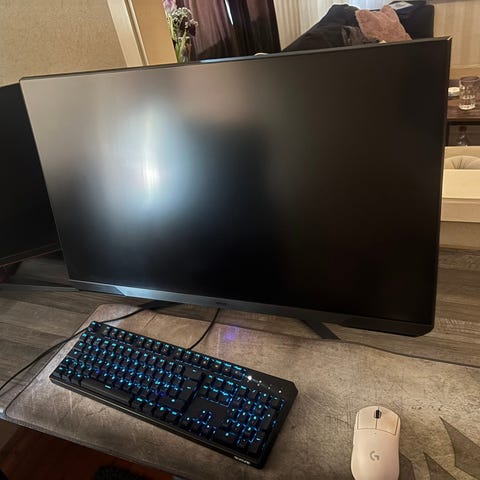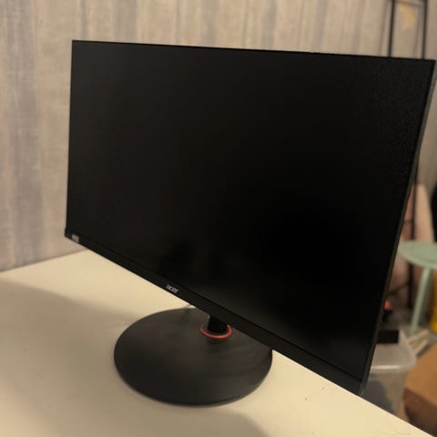 Skärm på 27 tum med böjd design i svart färg. Passar för användning med stationär dator, till exempel för arbete, studier eller underhållning. Skärmen står på ett runt stativ och ansluts till dator via kabel (typ av anslutning framgår inte av bilderna). Övriga tekniska specifikationer som upplösning, uppdateringsfrekvens och portar är inte angivna.