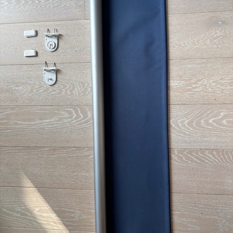 Rullgardin dag och natt i vit färg. Består av dubbla tygpaneler med växlande transparenta och täta ränder som kan justeras för att reglera ljusinsläpp och insyn. Monteras ovanför fönster och rullas upp på kassett. Passar för inomhusbruk i exempelvis vardagsrum, sovrum eller kontor.