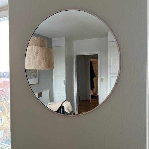 Rund spegel från CLAS OHLSON, kunde dock inte hitta det alternativet men märket är clas ohlson. Mycket fint skick!