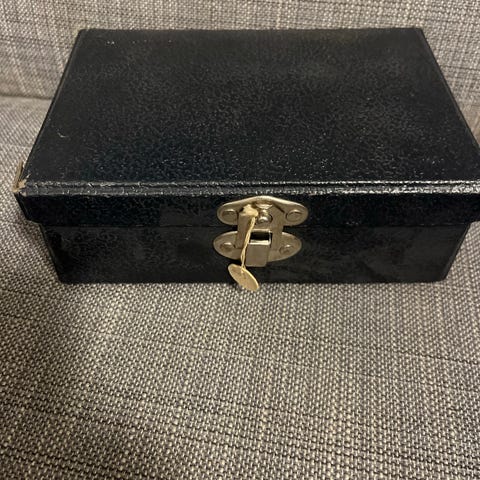 Antik minikista/etui i brons/ malm med figurativ dekor i silver. Egypten runt sekelskiftet 1800/1900.