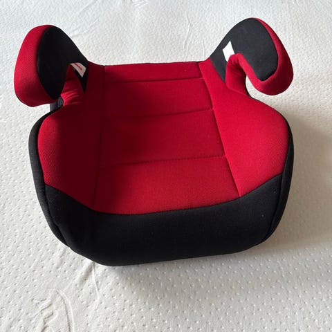 Säljer en stabil och bekväm bälteskudde i svart tyg. Perfekt som extrakudde i bilen, till mor- och farföräldrar eller som smidig lösning vid kompisåkning.
