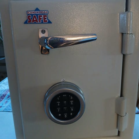 Nyckelskåp i metall med ljus/vit finish. Skåpet har flera rader med krokar på insidan av dörren och i skåpets bakkant för upphängning av nycklar. Utrustat med lås på framsidan. Passar för förvaring och organisering av nycklar i hem, kontor eller förråd.