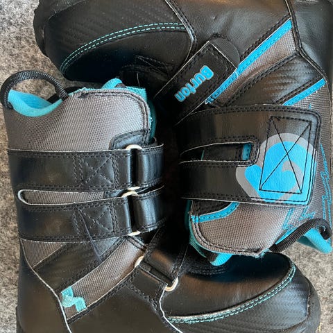 Burton snowboardboots i svart med blå sula. Klassisk snörning framtill och förstärkta partier runt fot och ankel. Passar för snowboardåkning i pist och park. Storlek och modellbeteckning anges inte på bilderna utan får kontrolleras vid intresse.