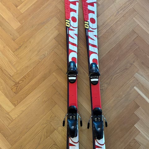 Atomic XT 120 slalomskidor i röd färg med Atomic-bindning.