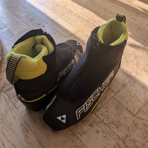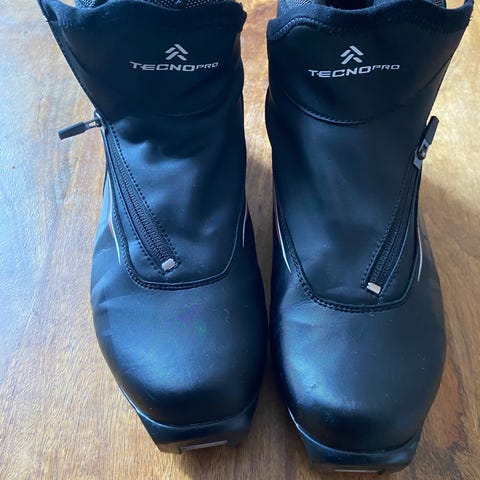 Pjäxorna är svarta med dragkedja framtill och överdrag som skyddar snörningen.
