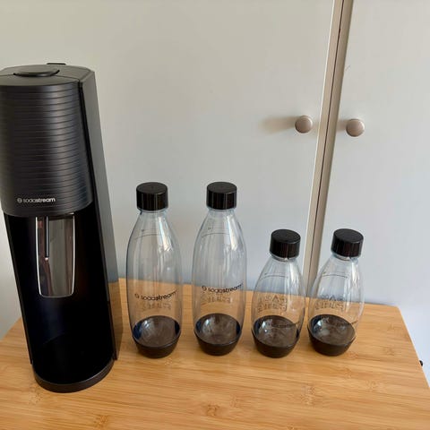 Sodastream m. 2.5 st kolsyrepatroner. En sitter i maskinen.
