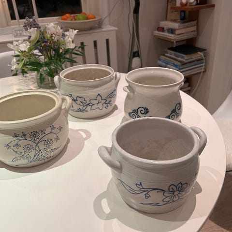 Mycket bra skick. Inga sprickor eller nagg förutom en liten spricka på lockets kant till den mindre kryddburken. Kan beses och hämtas i Lund eller skickas med Blockets betal- och leveranslösning.