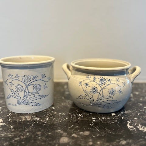Mycket bra skick. Inga sprickor eller nagg förutom en liten spricka på lockets kant till den mindre kryddburken. Kan beses och hämtas i Lund alternativt i centrala Stockholm. Eller skickas med Blockets betal- och leveranslösning.