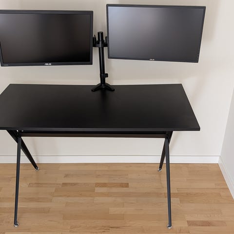 Dubbla 24-tums datorskärmar med bordsstativ för 4 skärmar