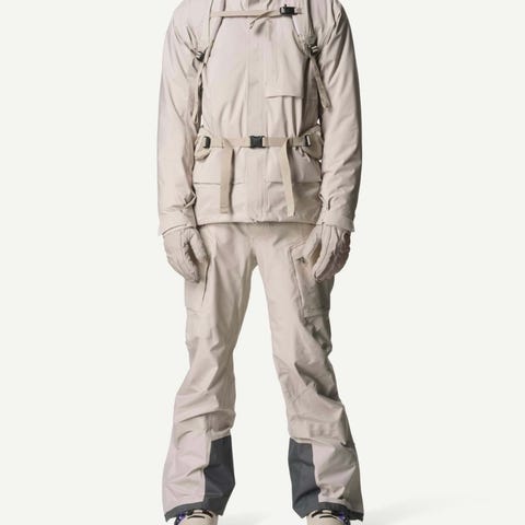 Houdini skalbyxa för herr med hängslen. Byxan är i färgen sand med hög midja och justerbara axelremmar. Den har flera benfickor. Passar för utomhusaktiviteter som skidåkning, vandring och annan friluftsanvändning där väderskyddande skalplagg önskas. Oanvända med taggen kvar. Nypris 6500kr