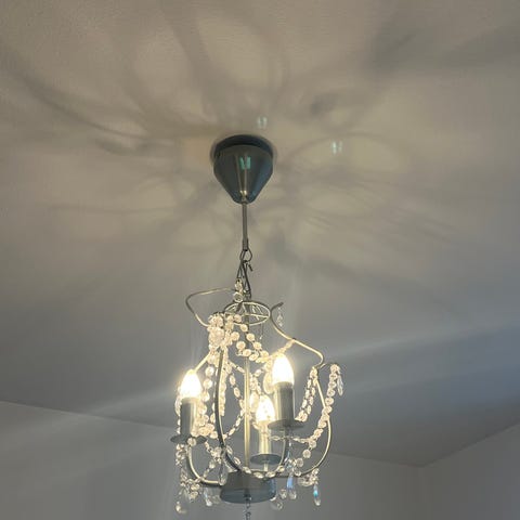 Köpes icke-fungerande men hel kristallkrona (200 kr), samt större fungerande projektorduk (500kr).