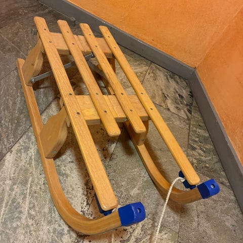Jättefin träsläde att dra barnen i! Knappt använd.