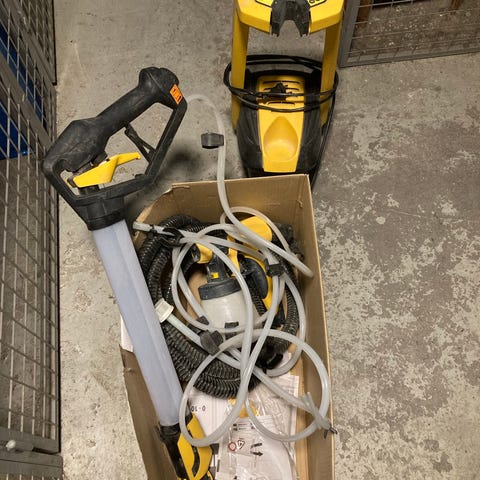 Wagner WallPerfect färgspruta för väggmålning. Avsedd för applicering av färg på väggar och liknande ytor. Utrustningen består av en sprutenhet med behållare för färg och handtag med slang. Systemet är anpassat för inomhusbruk vid målning av väggar och kan användas för jämn och kontrollerad spridning av väggfärg. Pris kan diskuteras!