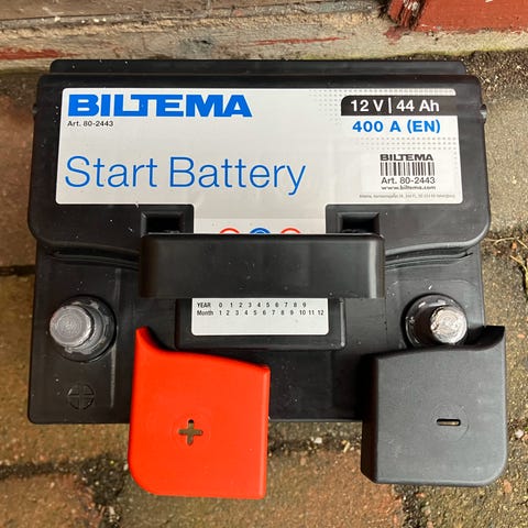 Biltema TIN startbatteri för fordon. Batteriet har en spänning på 12 V, kapacitet på 62 Ah och kallstartström på 590 A (EN). Avsett som startbatteri för bil eller annat fordon som använder 12 V blybatteri med dessa specifikationer.