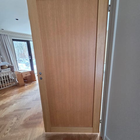 Dörrarna har skötts om och oljats regelbundet. Priset gäller för hela paketet, 2 dörrar och skenor. Belysning medföljer ej.