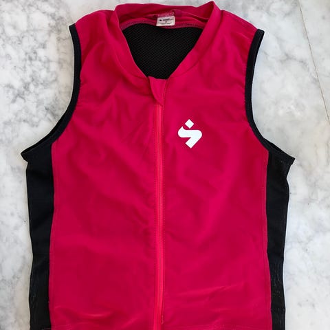 Scott ryggskyddsväst för barn i svart med röda detaljer. Västen har dragkedja framtill och integrerat ryggskydd på baksidan. Lämplig för aktiviteter som cykling, utförsåkning eller annan sport där extra skydd för ryggen behövs. Storlek enligt etikett på insidan av kragen.