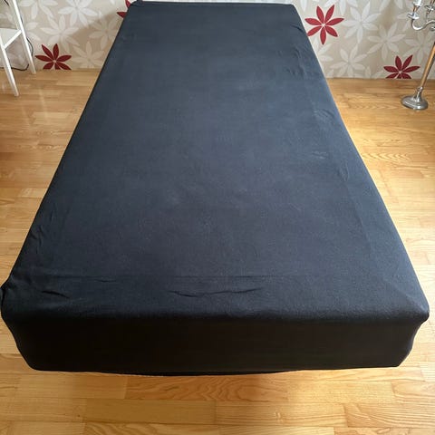 Bäddmadrass medföljer. Yttertyget kan behöva tvättas.