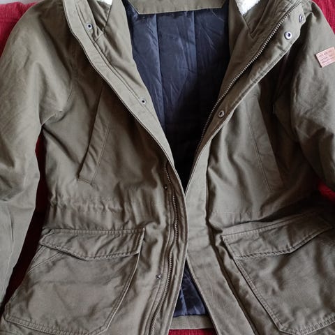 Bula jacka för herr i storlek M. Jackan är blå och tillverkad i bomull. Den har huva med mjukt foder på insidan, hel dragkedja med knappslå framtill samt flera utanpåfickor med knappar på bröst och nedtill. Lämplig som ytterjacka i vardag och fritid.