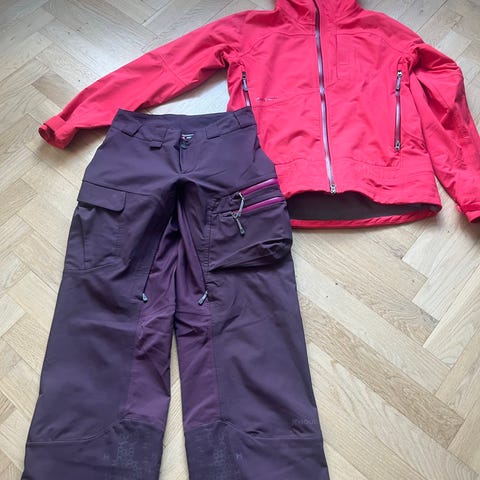 Jättefin Peak Performance skaljacka + skalbyxa i blått, lila och svart. Med Gore-tex, dvs vind- och vattentät.