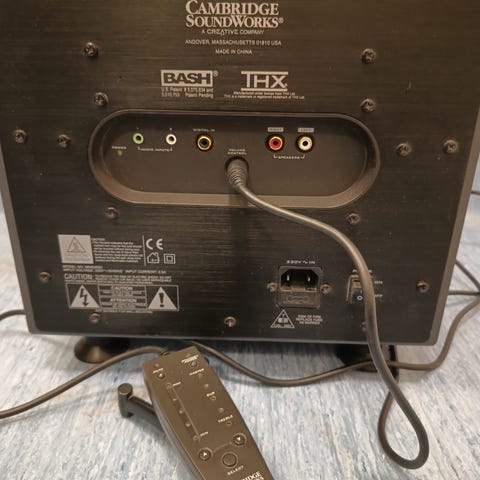 Canton AS CD 101 subwoofer med en RMS-effekt på 50 Watt och en musikeffekt på 100 Watt. Frekvensomfånget är 33-150 Hz. Subwoofer har både hög- och lågnivåingångar samt justerbar volym och delningsfrekvens. Strömförsörjning 220-240 V~, 50 Hz. Serienummer C 945268.