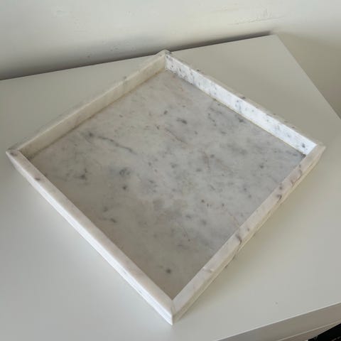 Ljusstake på vit/grå marmorplatta.