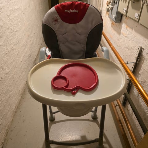 Lionelo barn matstol i grå och vit plast med stoppad sits. Stolen har avtagbar matbricka med mugghållare och kan fällas ihop för enklare förvaring. Passar som matstol för små barn vid matbordet. Sits och ryggstöd är formade för att ge stöd och komfort under måltider.